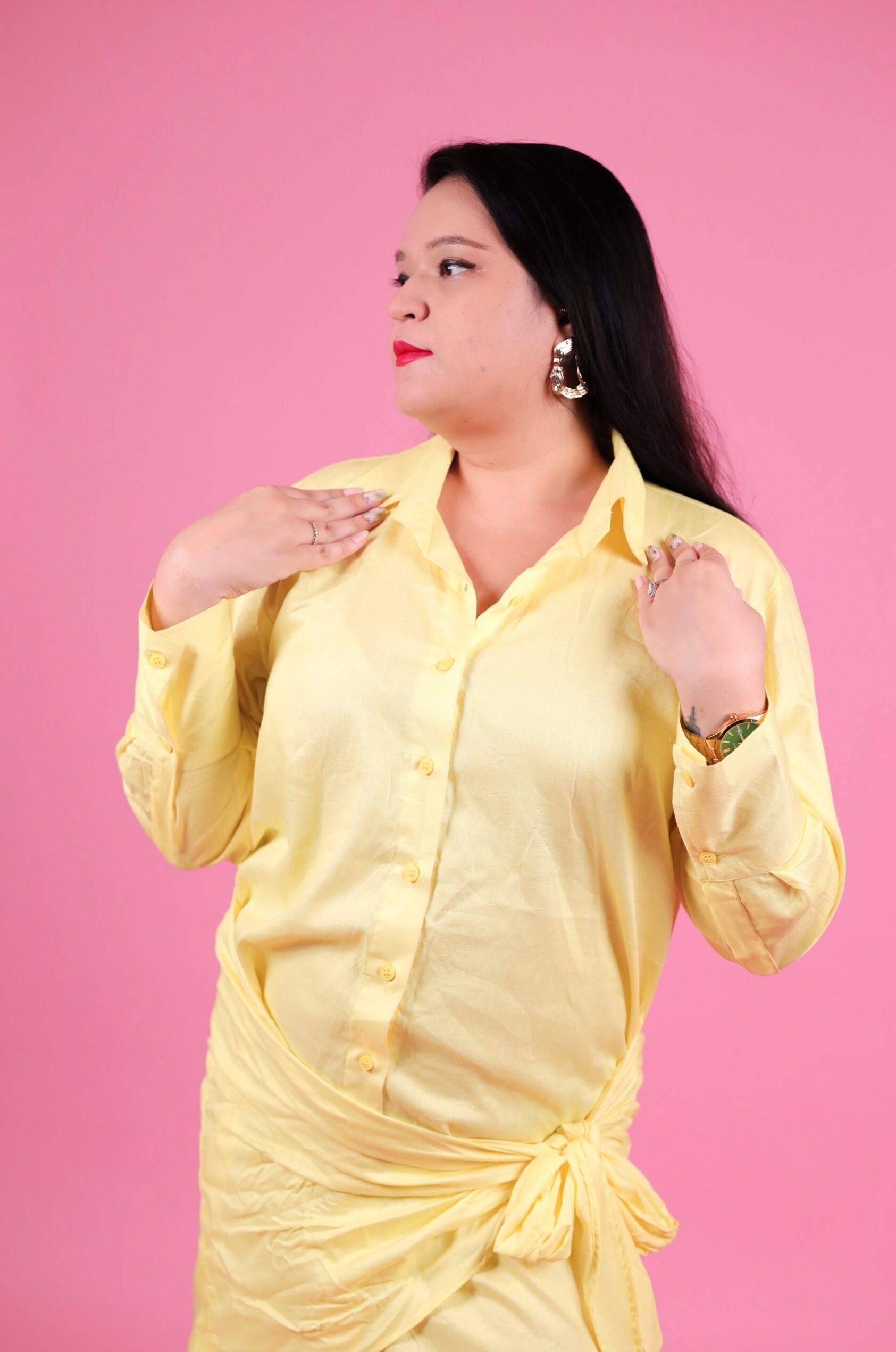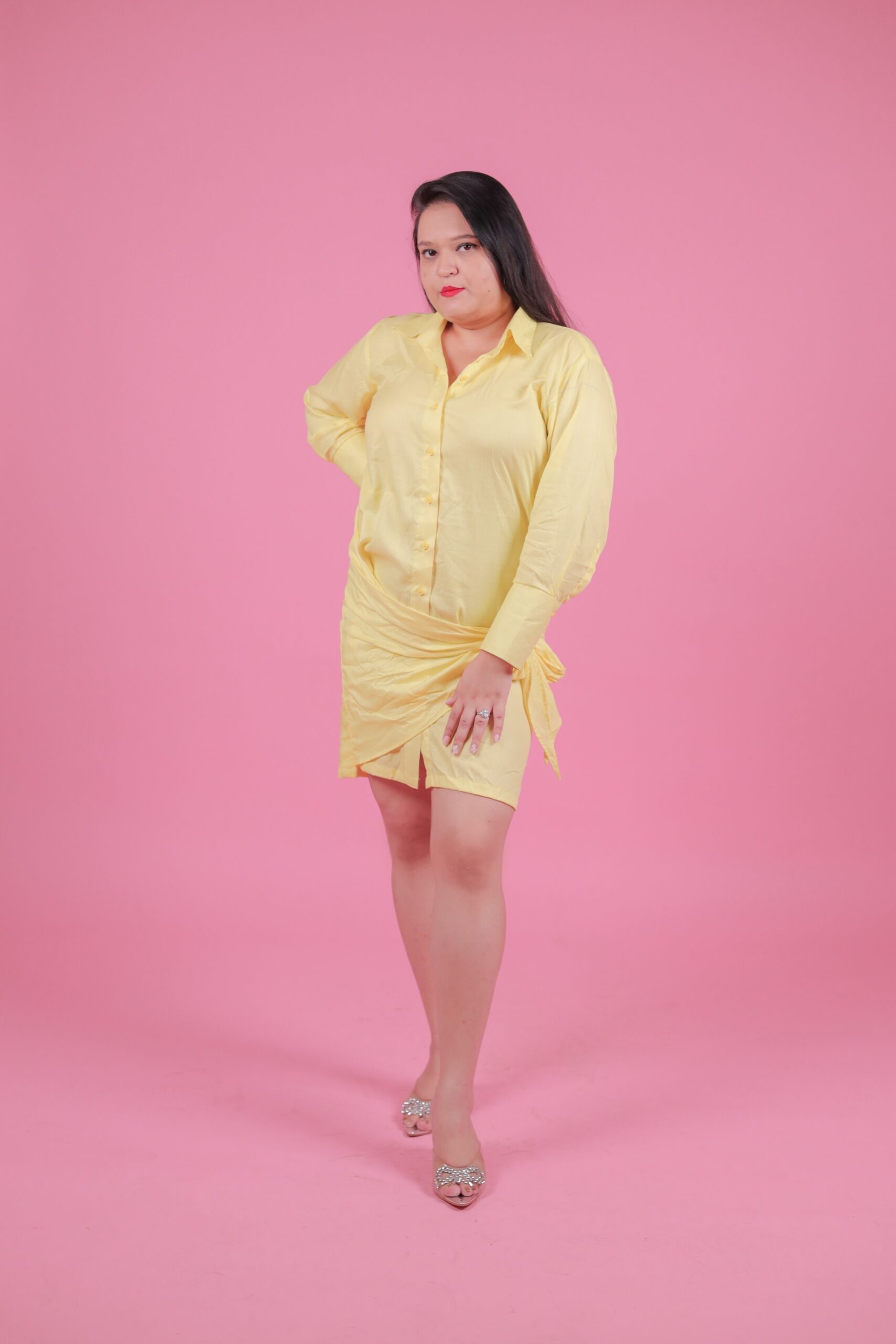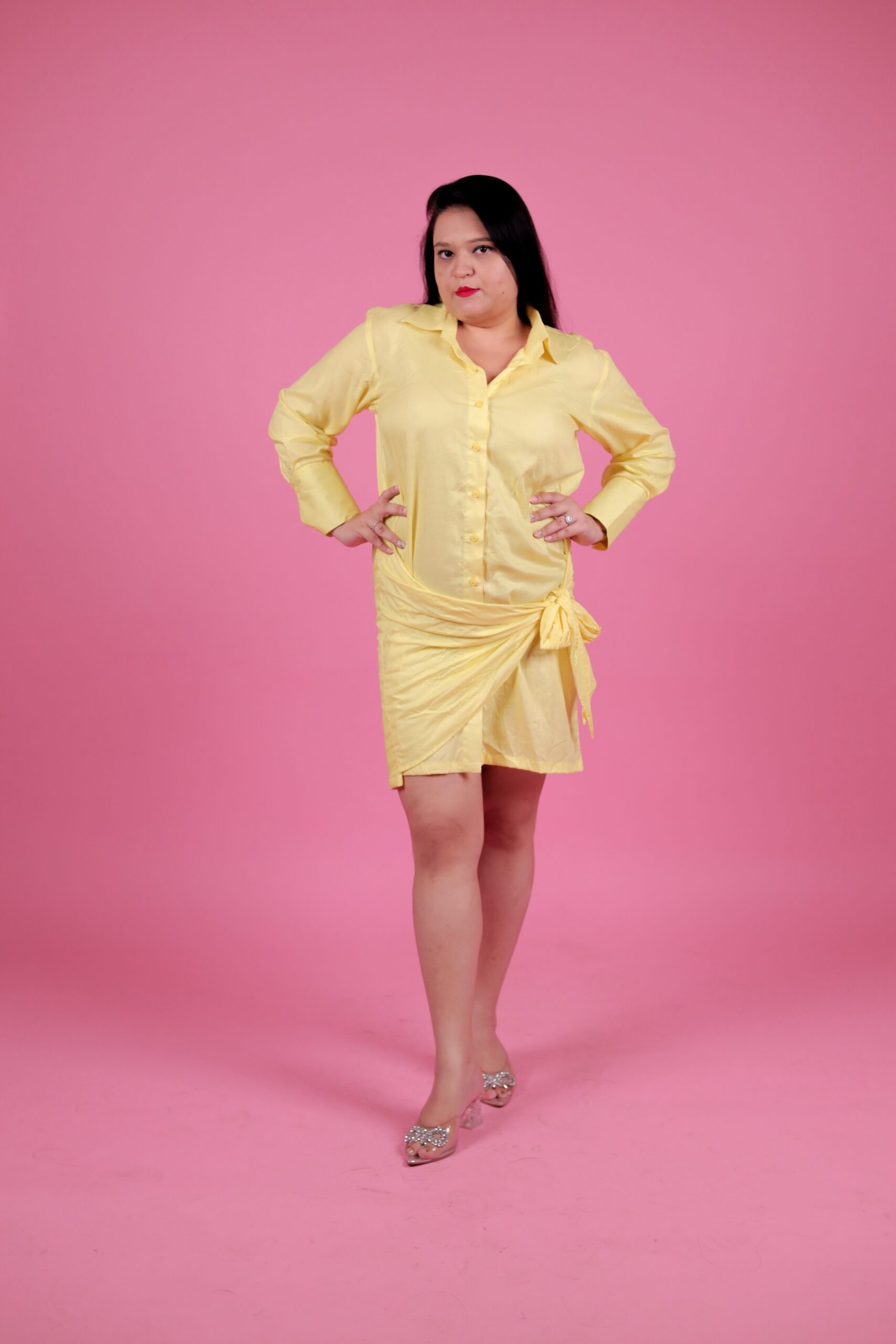 Step into sunshine with our Buttercup Knot Dress – a perfect blend of casual charm and playful elegance. Designed in a radiant yellow hue, this button-down dress features a classic shirt collar with full sleeves for a polished look. The standout detail is the stylish side tie-knot drape that adds a flattering silhouette and a touch of femininity. Made for days when you want to keep it effortlessly chic yet comfortable, this dress transitions seamlessly from brunch dates to evening outings. Pair it with heels or sneakers – either way, you’ll shine bright.