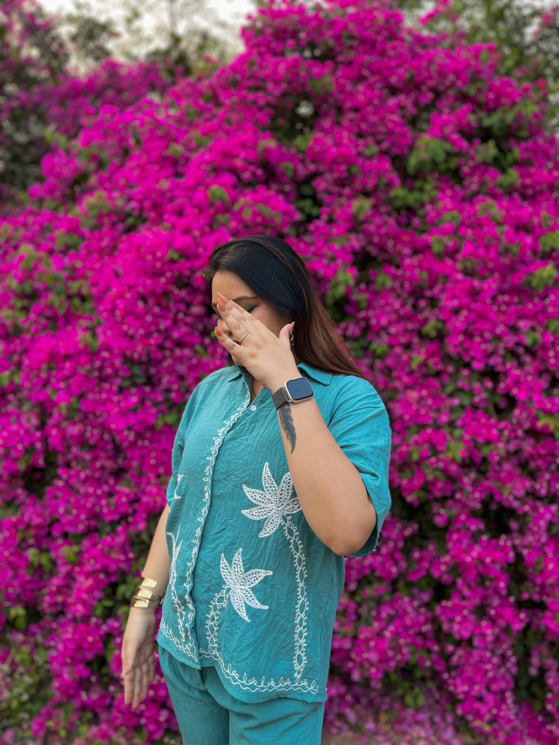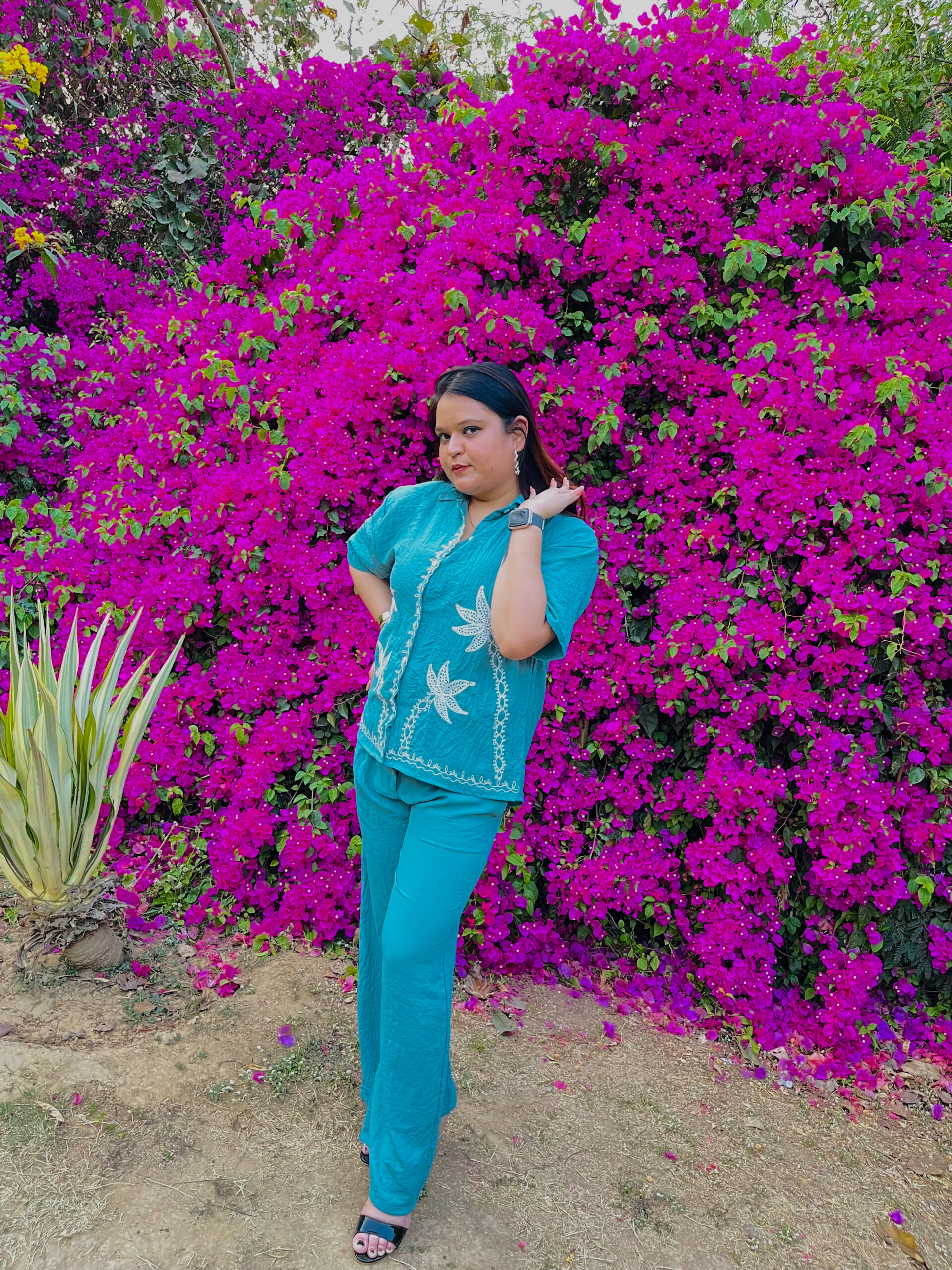 Elevate your everyday style with this effortlessly chic teal embroidered co-ord set. Designed for comfort and elegance, this set features a relaxed-fit top with delicate floral embroidery, adding a touch of sophistication to its breezy silhouette.